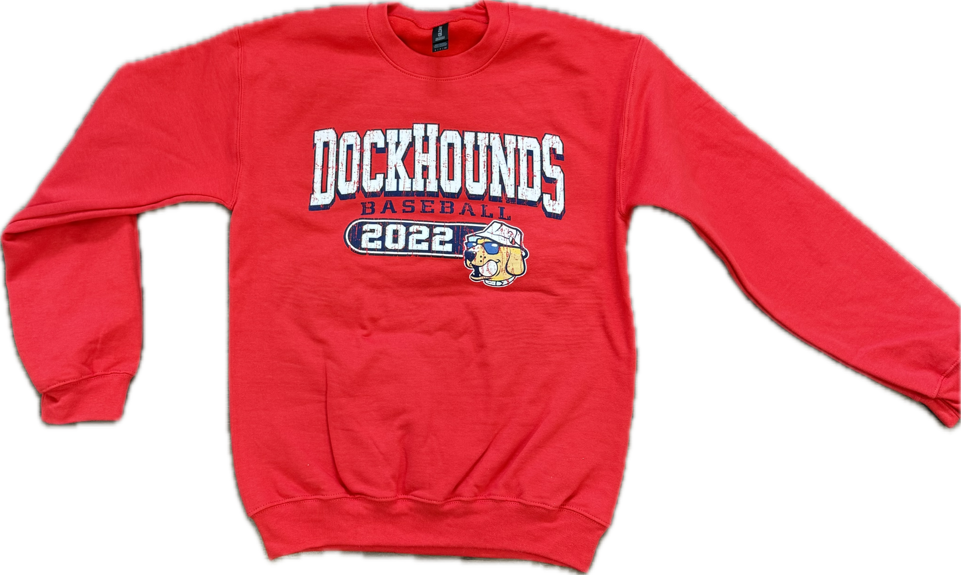 DockHounds Red Crew featuring bold team branding and Louie mascot design. Classic crew-neck silhouette in premium red fabric, perfect for game day or everyday wear. Show your DockHounds pride with this essential team apparel piece.